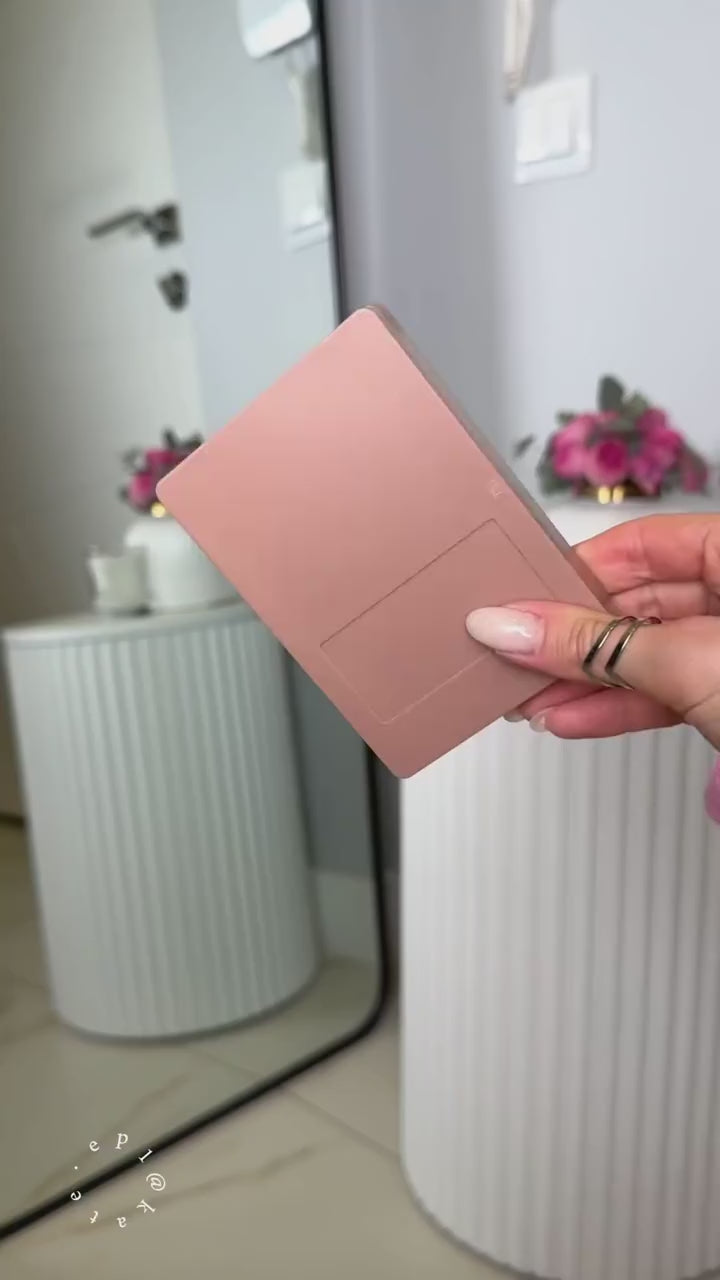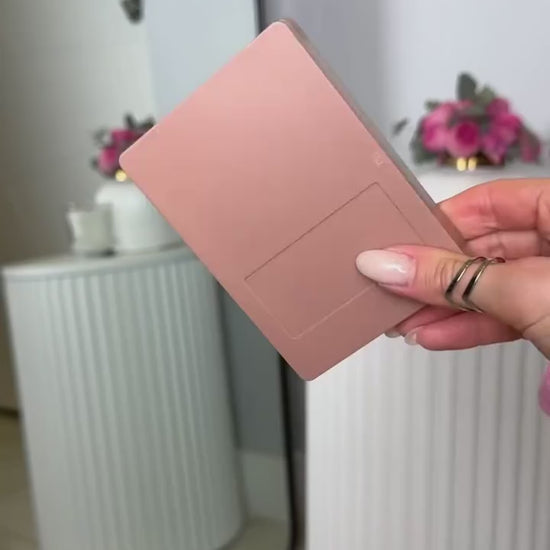 - Compact, stylish box with a built-in mirror